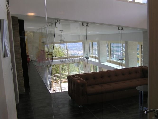 Döntött, pontmegfogásos üvegfal