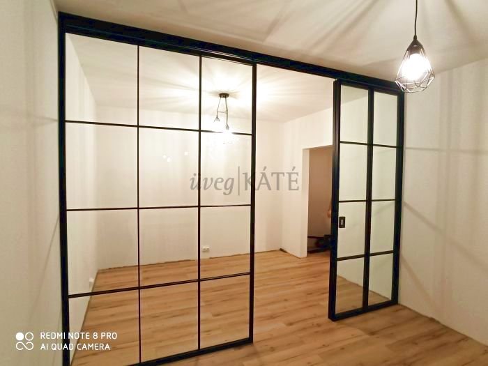A képeken látható üvegfal Loft Framed keretprofil és Fluido+ tolóajtó rendszer felhasználásával készült.