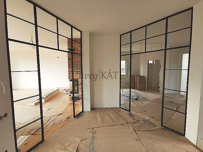 A képeken látható üvegfal Loft Framed keretprofil felhasználásával készült.